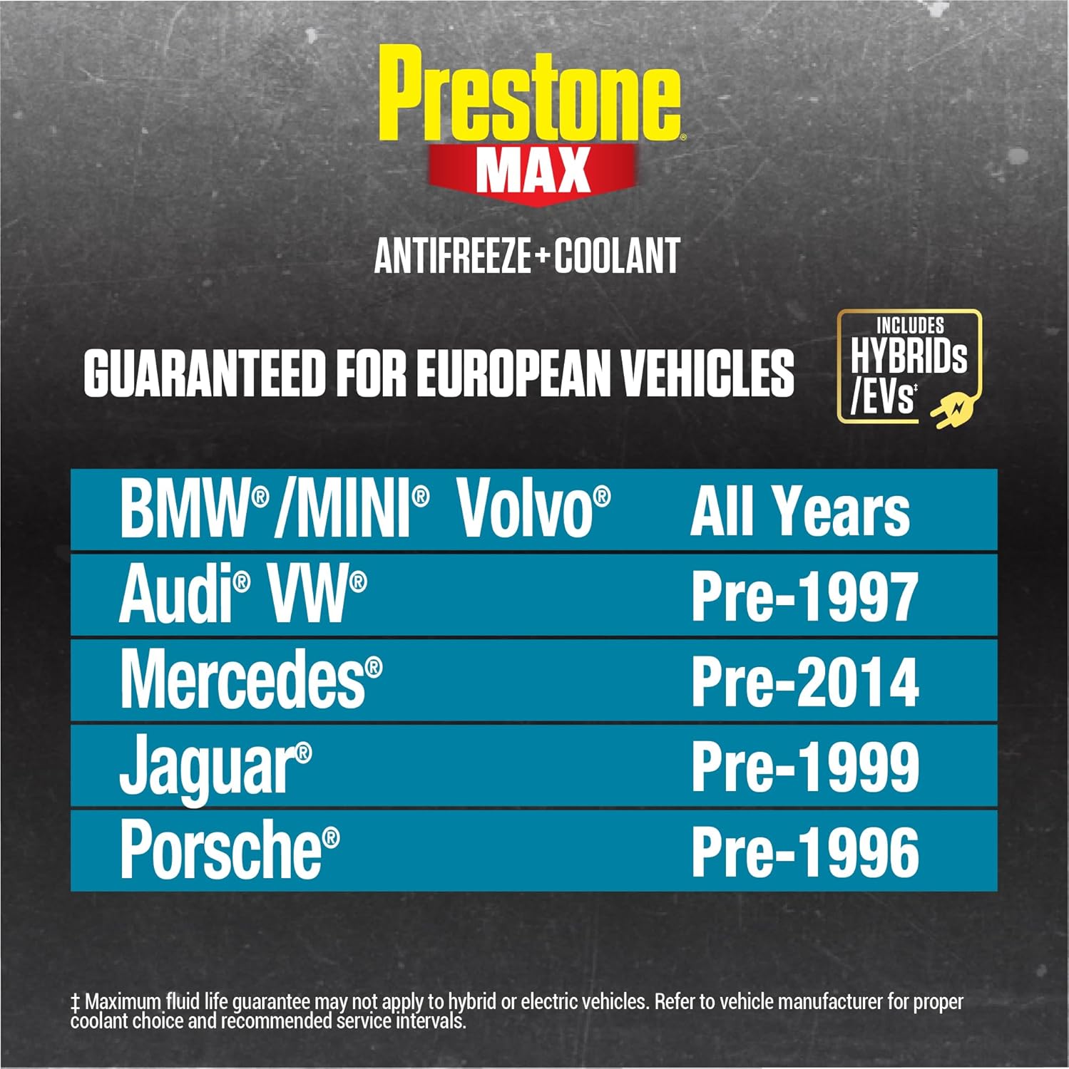 • Incluye el paquete de protección Prestone que cumple con los estándares de protección contra la corrosión, el óxido y el sarro en el sistema de refrigeración.